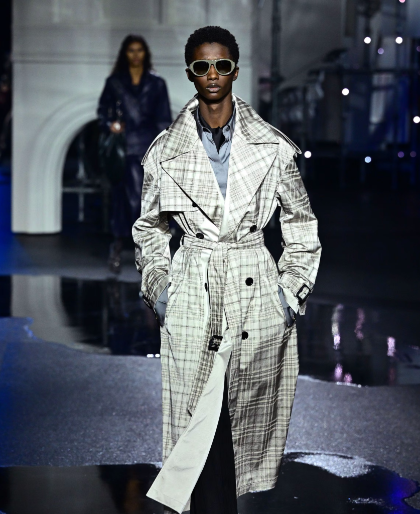 Burberry has doubled down on outerwear, accessorised by scarves, hats and umbrellas, as its bread and butter. The show opened with an ivory take on the trench-ballgown hybrid worn by Teyana Taylor at Sunday’s Baftas.