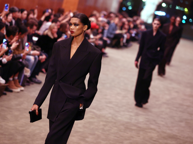 Plenty of brands in Milan showed strong black pantsuits this season, but the Saint Laurent version still occupies its own territory — sleeker, sharper, more loaded with meaning.