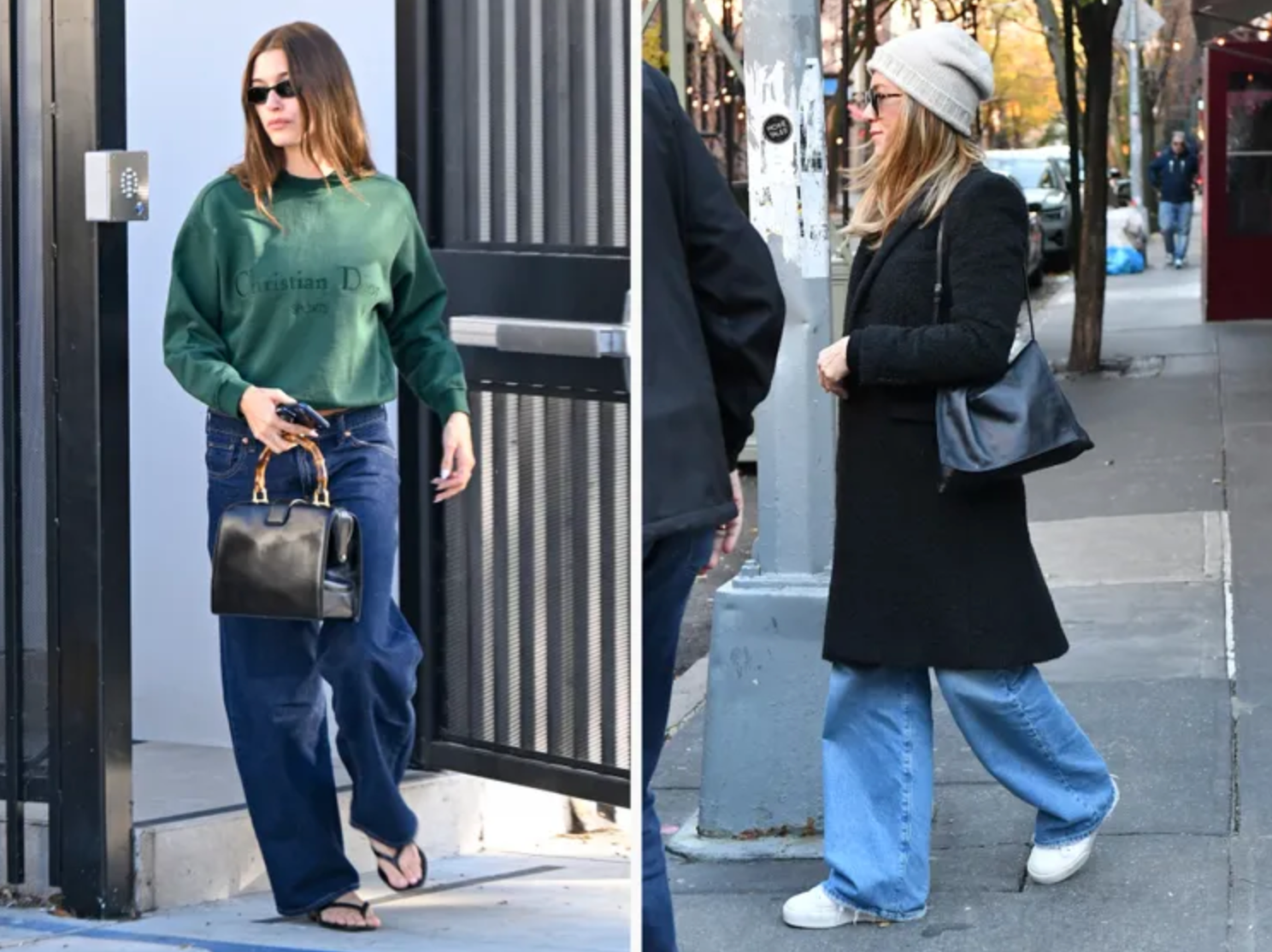 For example, Jennifer Aniston was recently spotted in NYC wearing the cutest casual winter look made up of a black wool coat, beanie, and, yes, baggy blue jeans that pooled around her white sneakers. The 56-year-old actress is the latest star to embrace the slouchy style, following in the footsteps of Jennifer Lawrence and Hailey Bieber.