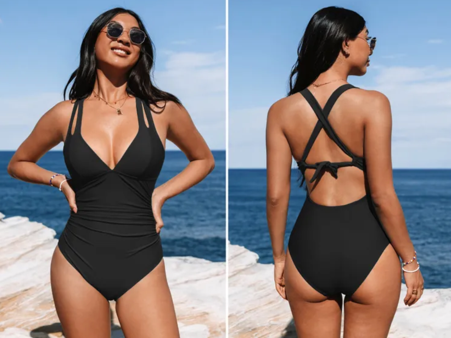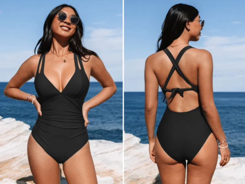 If you’re as convinced as I am, shop Cupshe’s V-Neck Double Strap One-Piece Swimsuit on Amazon. Plus, check out more flattering swimsuits, below.