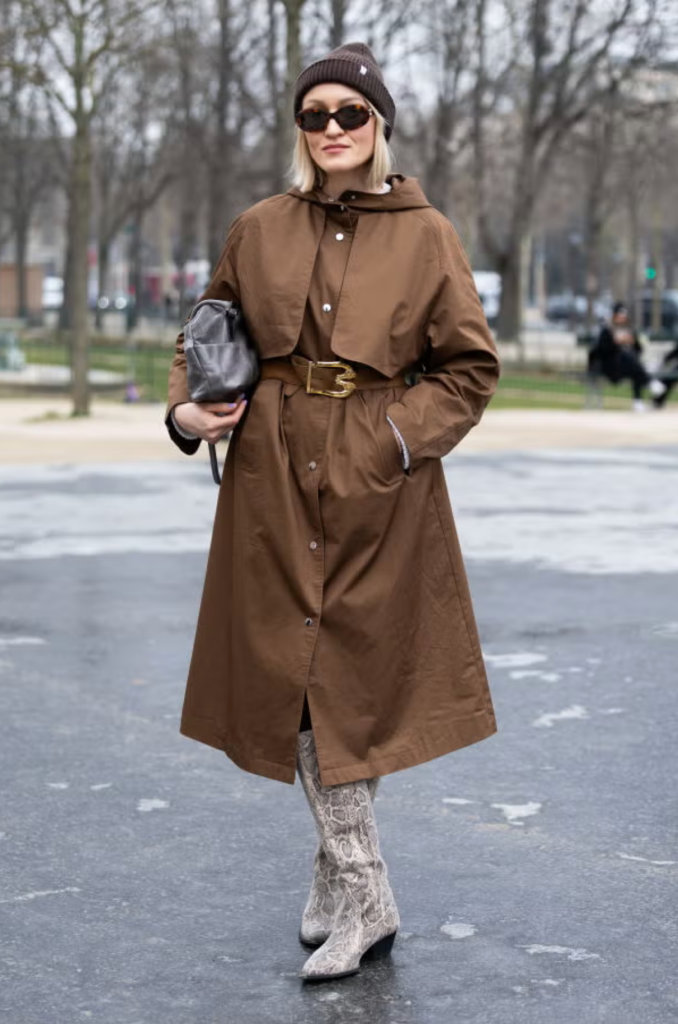 No, trench coat season is not over. If you’re looking for a new way to wear fashion’s favorite coat, I recommend throwing on a statement belt and adding a bit of faux snakeskin.
