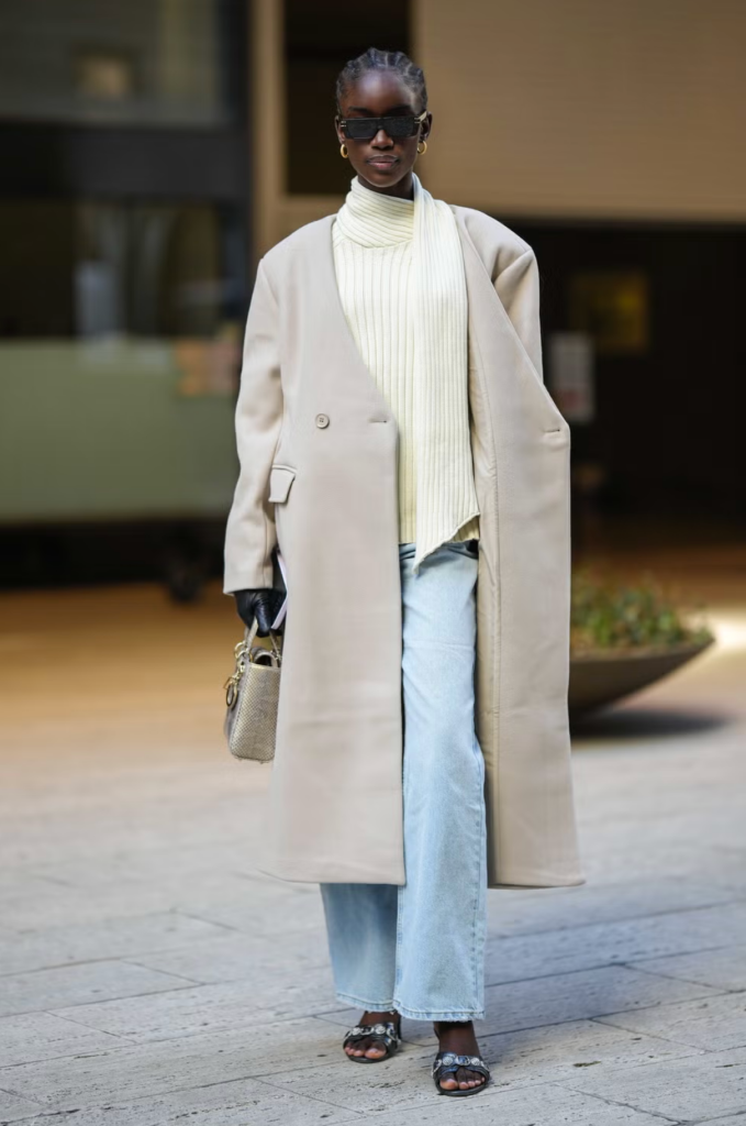 I don’t need to make the case for blacks and browns, so allow me to shed some light on a more underrated color combo: ashy grays and soft creams. The color story looks so dreamy with matching light-washed jeans.