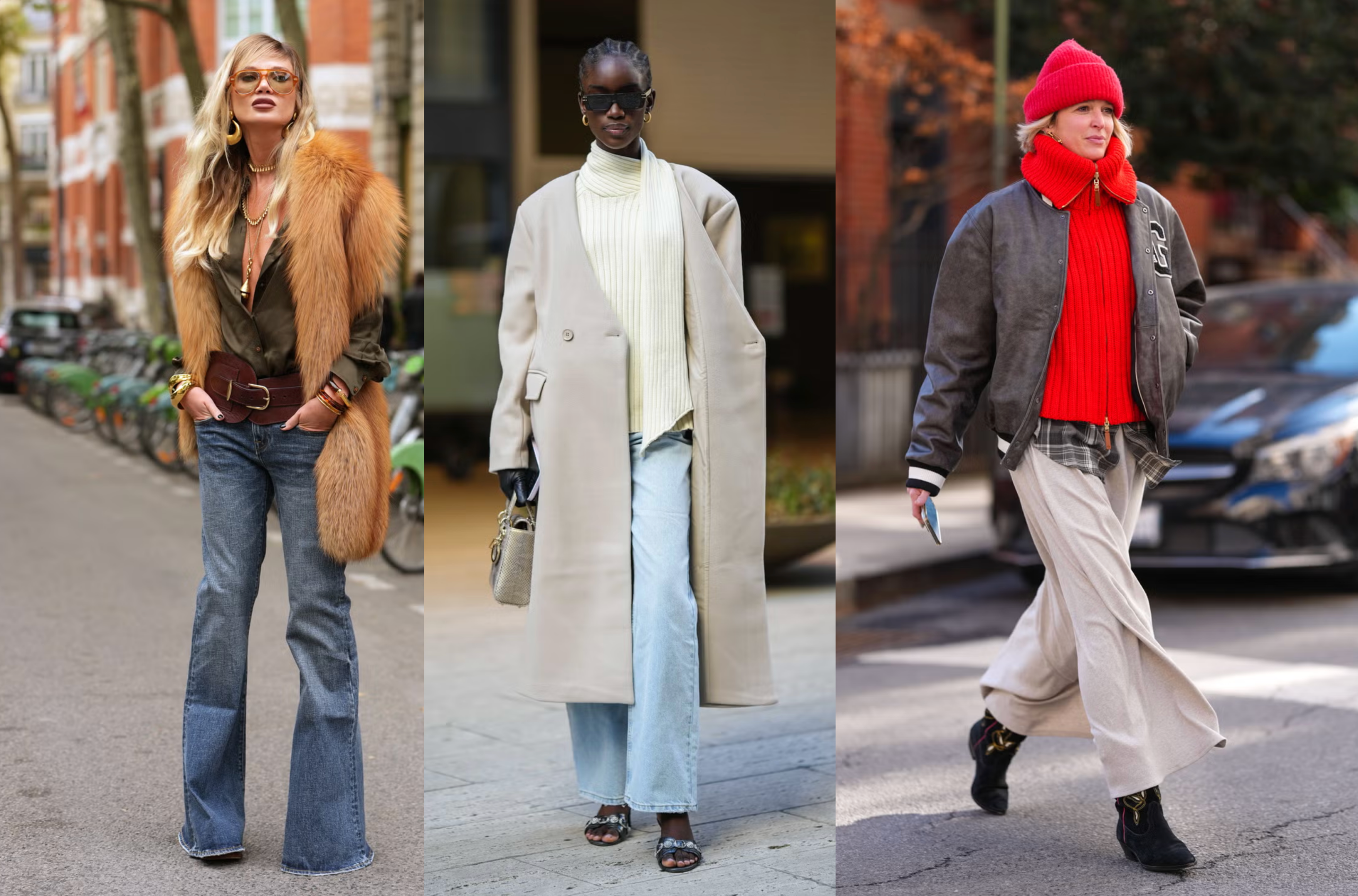 I don’t need to make the case for blacks and browns, so allow me to shed some light on a more underrated color combo: ashy grays and soft creams. The color story looks so dreamy with matching light-washed jeans.