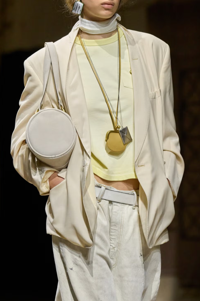 I’m honestly not quite sure what to think of this trend, but I do know I like it. It’s practical, but also like an updated take on the oversized pendant. With moments on the catwalks of Coach, TWP, Lacoste, and Victoria Beckham, this feels like one of those quiet luxury moments without it being entirely quiet, and I’m on board. It also reminds me of my elementary school teachers, who kept their glasses on a string (also something I spotted at TWP, by the way).